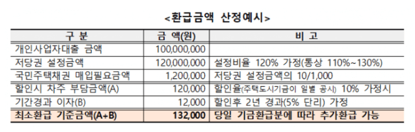 - 대상: 사업용 부동산 담보 대출을 받은 소상공인 및 중소기업 중 국민주택채권 매입 비용을 부담한 경우