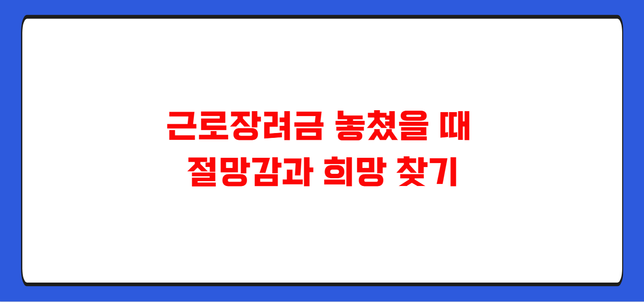 근로장려금 놓쳤을 때의 절망감과 희망 찾기