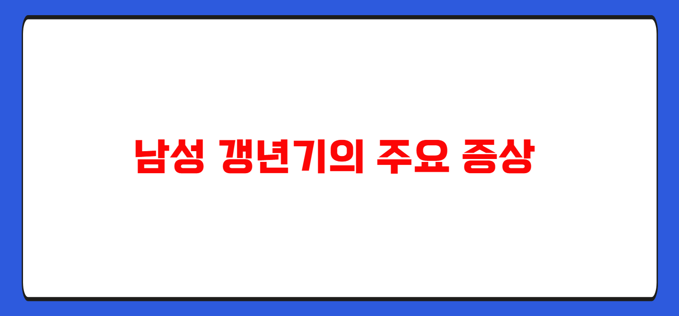 남성 갱년기는 신체적, 정신적, 정서적 변화를 동반합니다. 대표적인 증상은 다음과 같습니다.