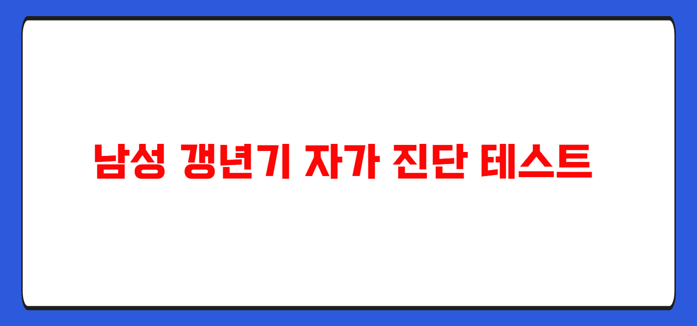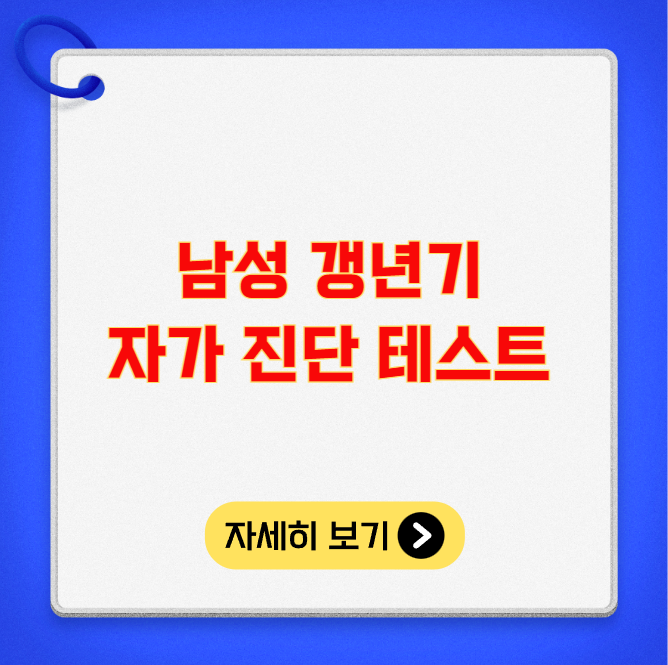 남성 갱년기는 자연스러운 생리적 변화지만, 이를 방치하면 삶의 질이 크게 저하될 수 있습니다. 자가 진단 테스트를 통해 초기 신호를 확인하고, 생활습관 개선과 전문적인 치료를 통해 건강한 삶을 유지하세요. 증상이 의심된다면 주저하지 말고 전문가의 도움을 받으시길 권합니다.