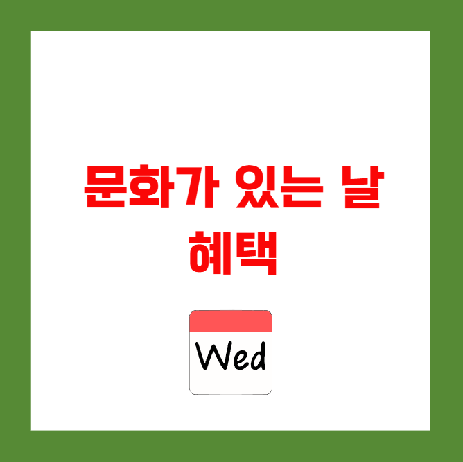매월 마지막 주 수요일에는 전국의 영화관, 공연장, 미술관에서 특별 할인을 제공하니 문화생활을 알차게 즐겨보세요.