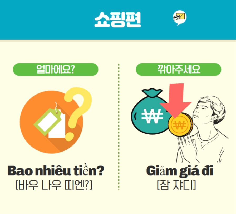 - 가격은 얼마예요?: Giá bao nhiêu? (짜 바오 나우?)