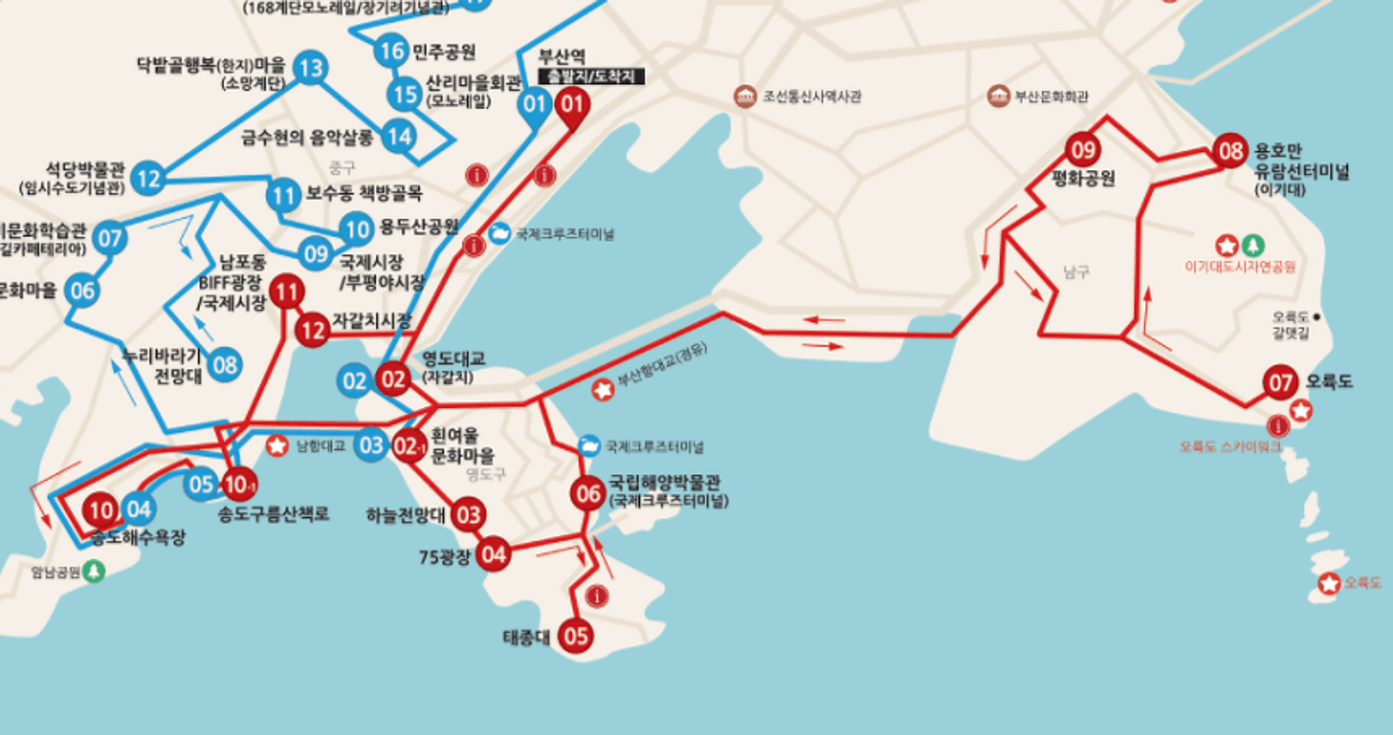 부산시티투어버스 레드라인 정류장 위치 및 시간표