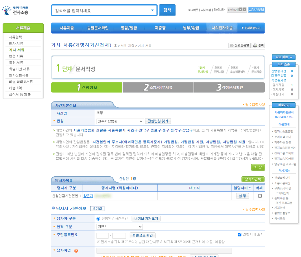 - 주민등록상 주소지 관할법원을 확인합니다.