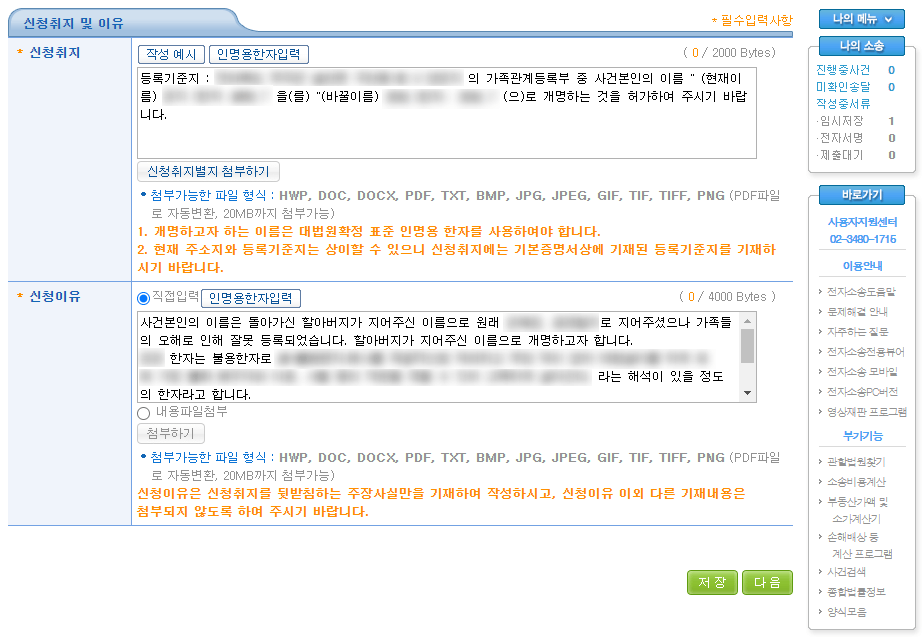 인터넷 개명 신청서 접수