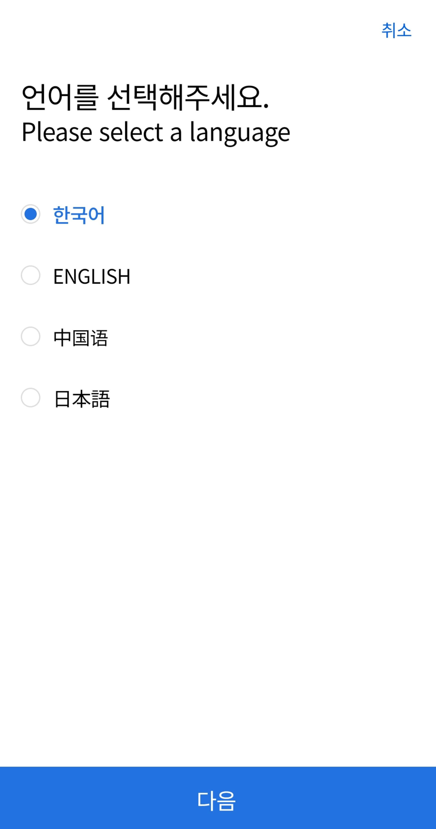 2. 앱을 실행한 후 언어를 선택합니다.