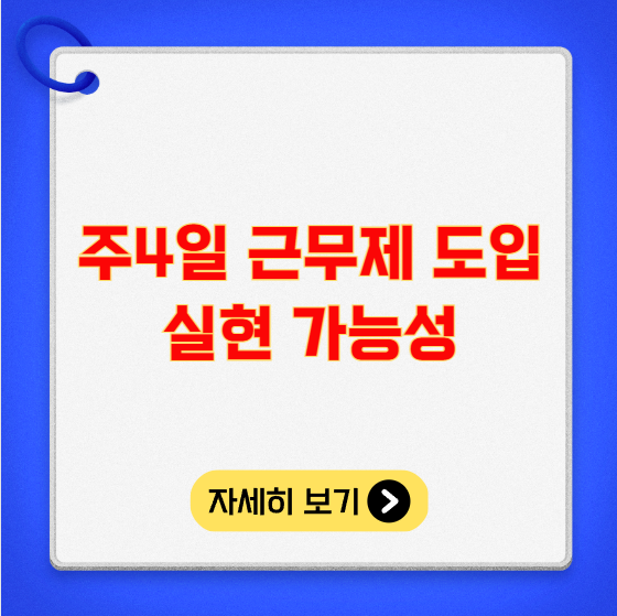 물론, 모든 기업이 주4일 근무제를 즉시 도입할 수 있는 것은 아닙니다. 하지만, 점진적인 도입을 통해, 우리는 일과 삶의 균형을 이루고, 더 행복한 삶을 만들어갈 수 있을 것입니다.