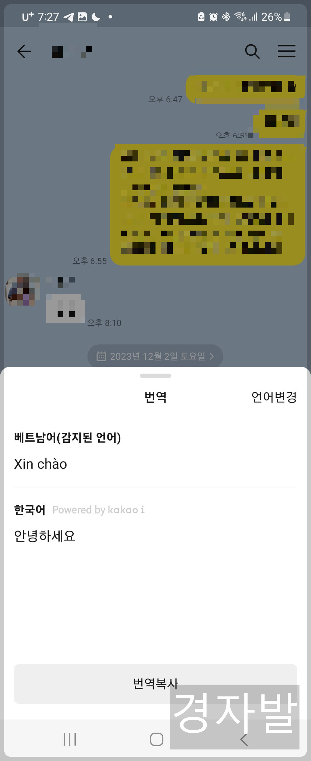 카카오톡 자동번역 기능