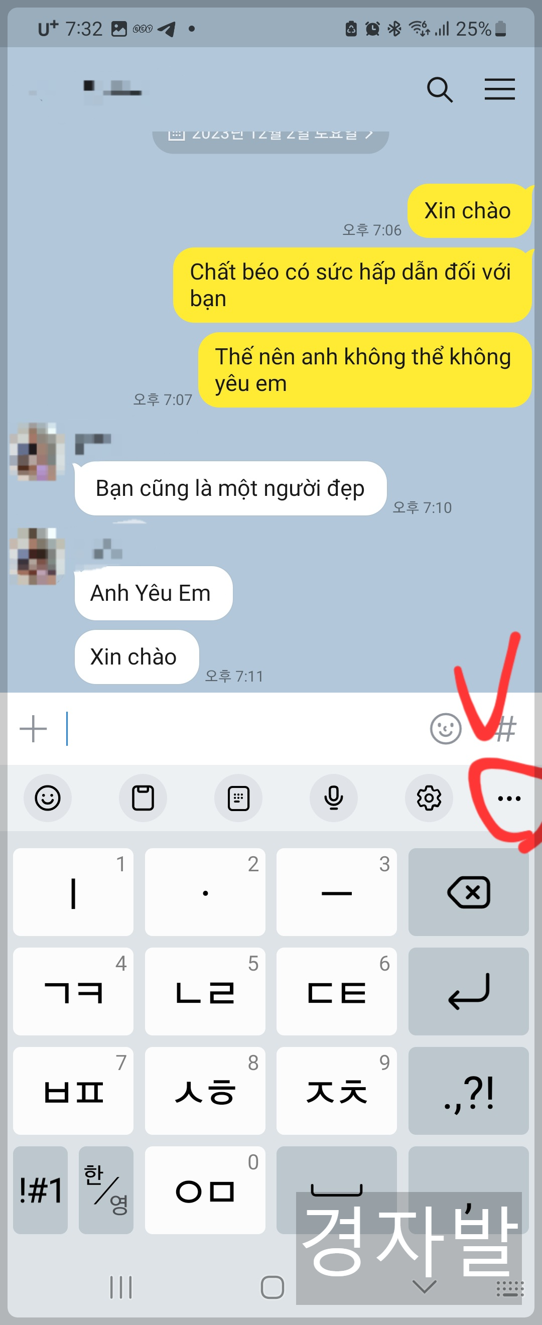 6. 답장하는 방법은 키패드 입력버튼에서 우측 점3개를 누릅니다.
