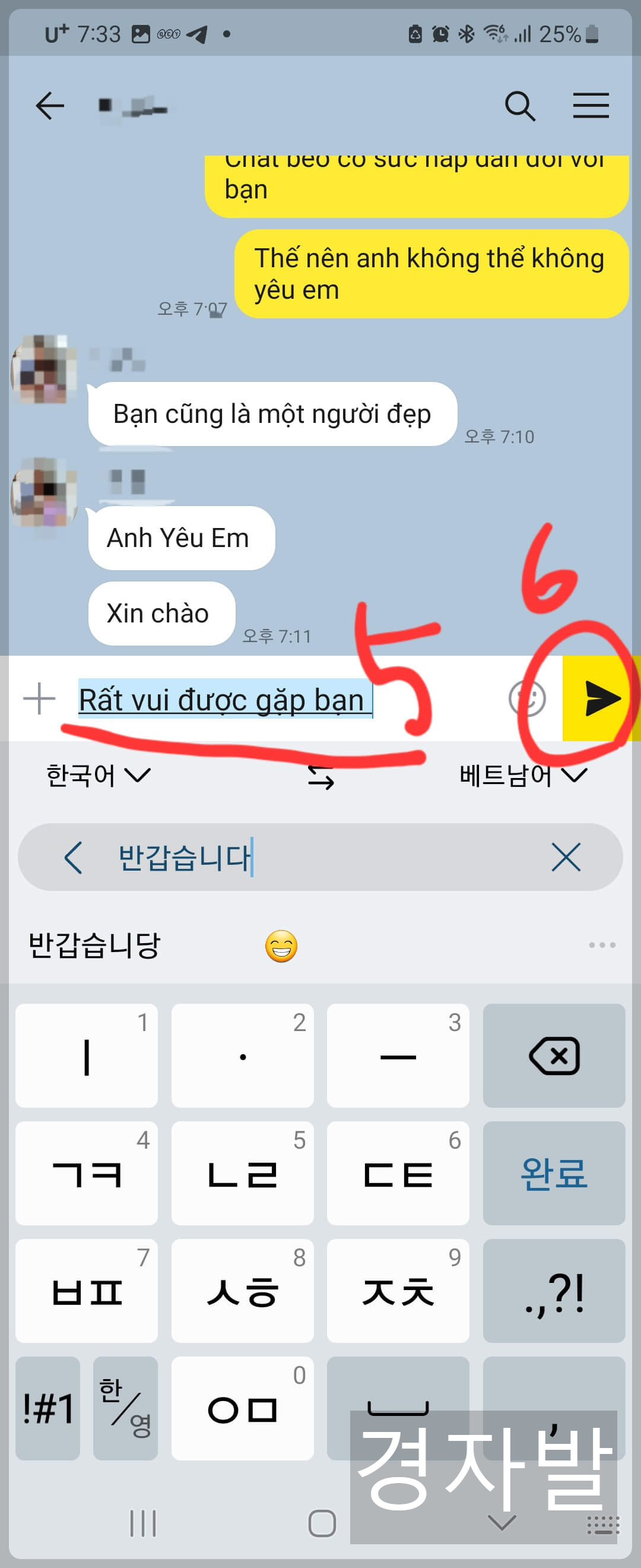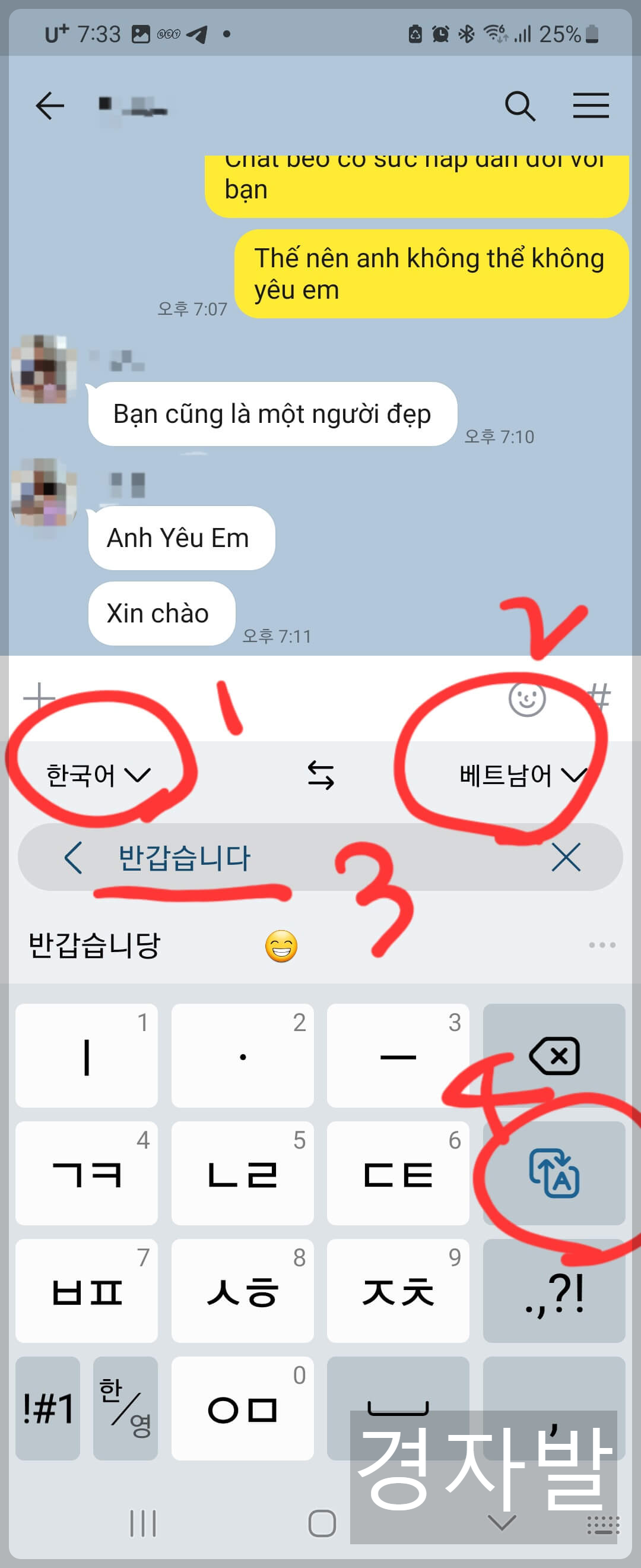너무 쉽죠? 두세번 반복하면 누구나 외국인과 대화가 가능합니다. 카카오톡은 사랑이네요^^