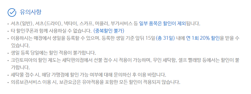 이번 포스팅을 하면서 알게 된 점은 의외로 많은 사람들이 크린토피아 멤버십카드 혜택을 제대로 누리지 못하고 있다는 것이었습니다. 저도 처음엔 카드 발급받고 귀찮아서 그냥 포인트 적립없이 결제하곤 했는데 이제부터라도 열심히 모아서 알뜰살뜰 살림꾼이 되어야겠습니다.