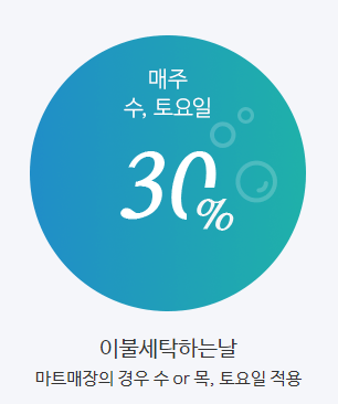 - 매주 수, 토요일 30% 할인