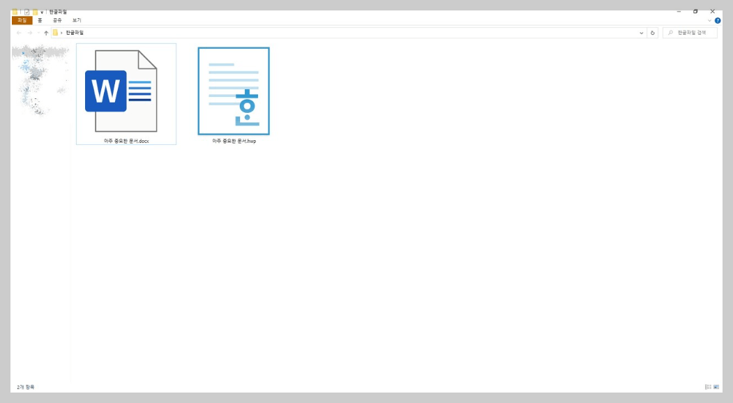 한글 파일은 HWP 파일 형식을, 워드 파일은 DOCX 파일 형식을 사용합니다.