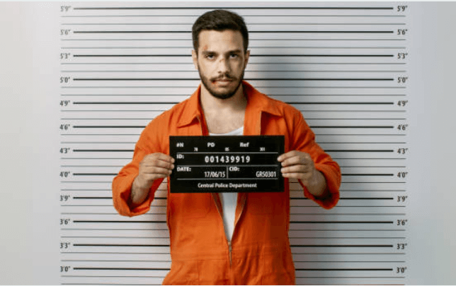 머그샷은 피의자의 정면, 측면 등을 촬영하여 관리하는 사진입니다. 키를 알 수 있도록 눈금이 있는 배경에 이름과 수감번호 등이 적힌 판을 든 채로 사진을 찍는 것이 정석입니다.
