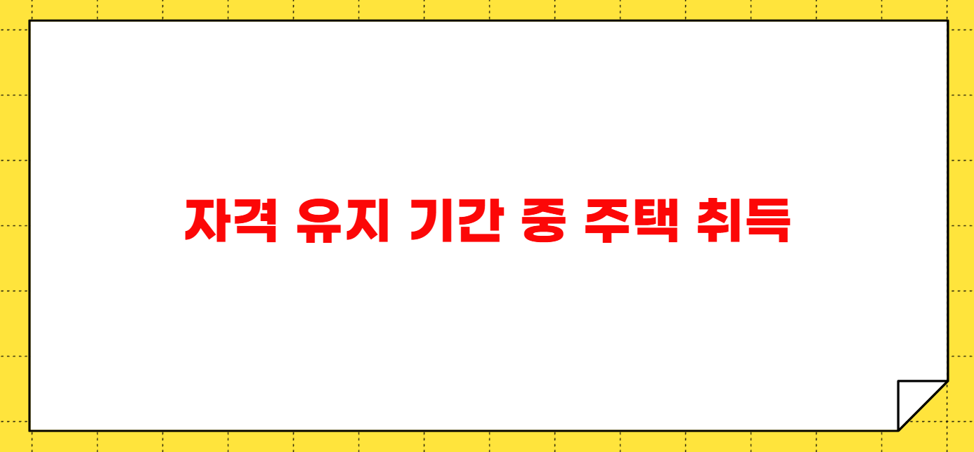 마지막으로 알아야 할 점은 자격 유지 기간 중 주택 취득에 대한 규정입니다. 원칙적으로 조합원 자격 유지 기간 중 주택을 취득하게 되면 자격이 상실됩니다. 하지만 예외적으로 상속에 의한 주택 취득의 경우에는 자격이 유지됩니다.