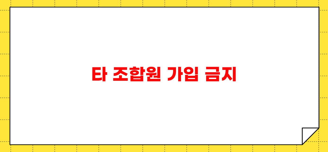 이는 중복 가입을 방지하고, 조합원 간의 형평성을 보장하기 위한 조치입니다. 이러한 점을 유념하여, 자격을 신청할 때 신중하게 살펴보시기 바랍니다.
