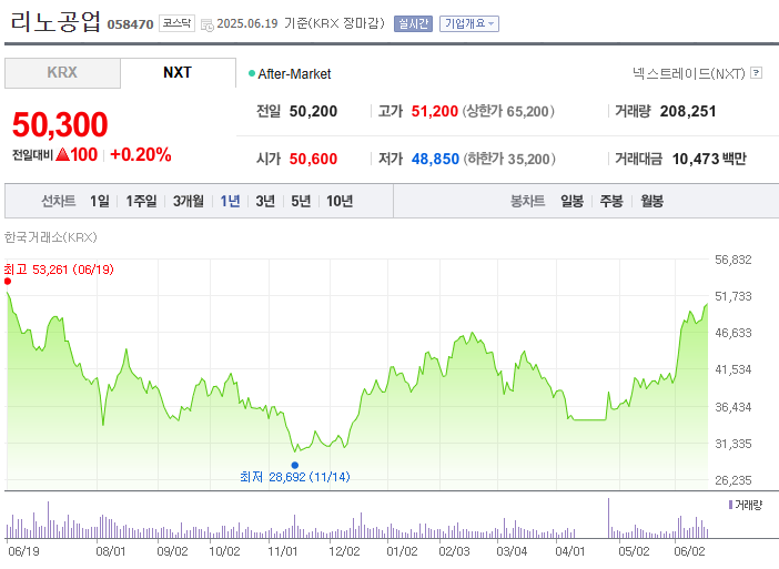 반도체 검사 장비의 핵심 부품인 소켓을 제조하는 기업으로, AI 반도체 테스트 수요 증가에 따라 고성장이 기대됩니다.