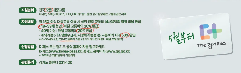 일반 K-패스가 대중교통 이용 활성화를 위한 기본 정책이라면, The 경기패스는 여기에 더해 경기도민의 교통비 부담을 실질적으로 줄여주기 위해 설계되었습니다.