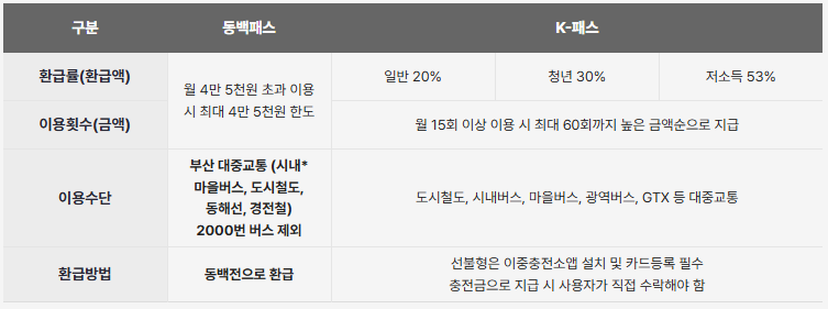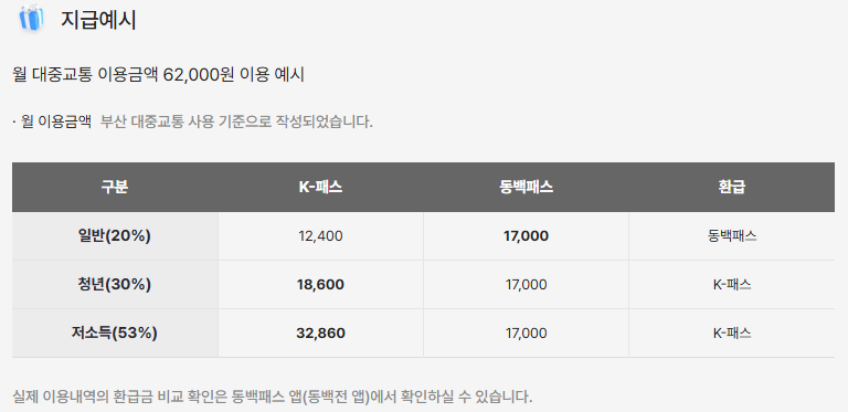 - 동백패스 환급: 부산 지역 대중교통 이용 요금의 일정 비율을 환급합니다.